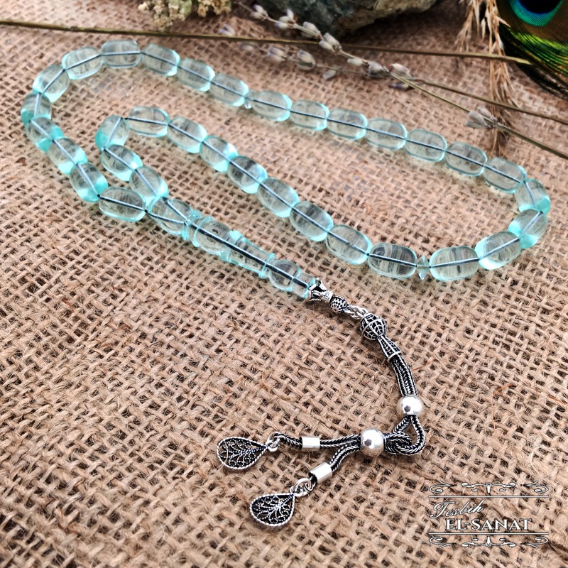 925 Ayar Gümüş Kapsül Kesim Uçak Camı Tesbih (8x12mm)